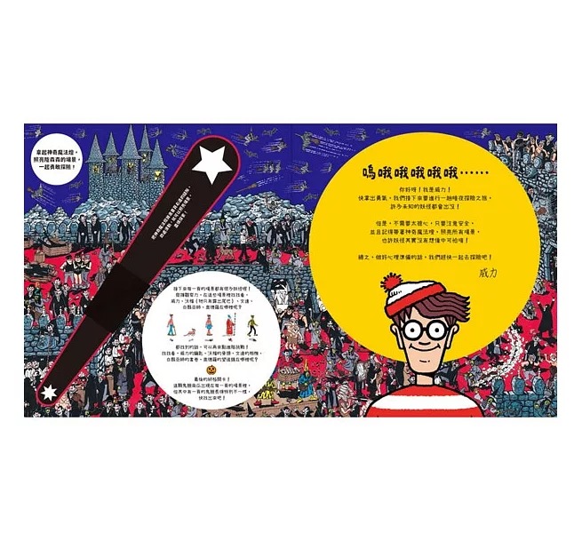 ▌人氣《威力在哪裡》系列——跨世代與跨國界的神奇魅力 《威力在哪裡?》系列自1978年問世以來,已在超過50個國家出版,翻譯成超過30種語言,深受大小讀者喜愛。Spotlight 系列延續傳統,邀你在五彩繽紛的圖畫中尋找那位穿著紅白條紋相間的衣服、戴著圓框眼鏡的男孩! ▌培養 專注力X觀察力X記憶力 本書透過層層關卡與找威力遊戲,引導讀者在琳瑯滿目、細節豐富的畫面中尋找目標物,過程中自然訓練專注力,同時激發讀者的記憶力與觀察力,寓教於樂。 ▌特殊透光片 X 特殊設計紙板,帶來全新玩法 Spotlight系列專屬設計:將「神奇魔法燈」紙板置於場景頁的透光片之後,光影效果彷彿聚光燈,幫助聚焦畫面細節,讓尋找變得更輕鬆、更有趣! ▌細膩畫風 X 鮮明色彩,處處藏有驚喜 由威力系列作者兼繪者Martin Handford繪製,每一頁都是細節感。無論是頁面中央還是小角落,處處藏著令人會心一笑的小巧思。不僅提升讀者對圖像與細節的敏銳度,也啟發美感與想像力。 *適讀年齡:3歲以上