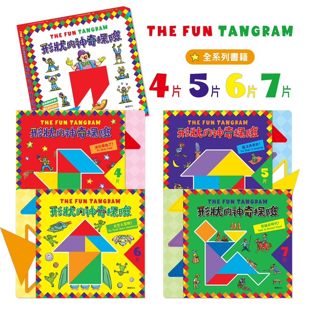- 每頁皆設計益智性挑戰題目,不只是七巧板拼圖,更是一場腦力激盪的大冒險!