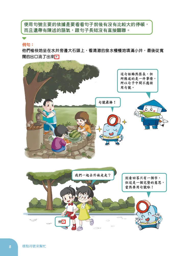 系統架構,化繁為簡:本書將複雜的標點符號化繁為簡,概分為「常用的點號」、「熟悉的標號」以及「易混用的標點符號」三大單元。從基本用法、特殊用法,到常見的誤用,循序漸進,讓孩子完全掌握標點符號的知識、技巧。