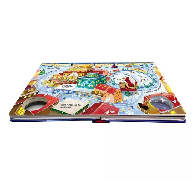 書中包含四組固定式軌道,孩子可以利用軌道遊玩聖誕小雪橇。可愛的聖誕小雪橇在繽紛的城市與山間小鎮場景裡快速奔跑,滿足孩子對世界的好奇心,並透過擬人化的故事情節刺激孩子們的想像力。