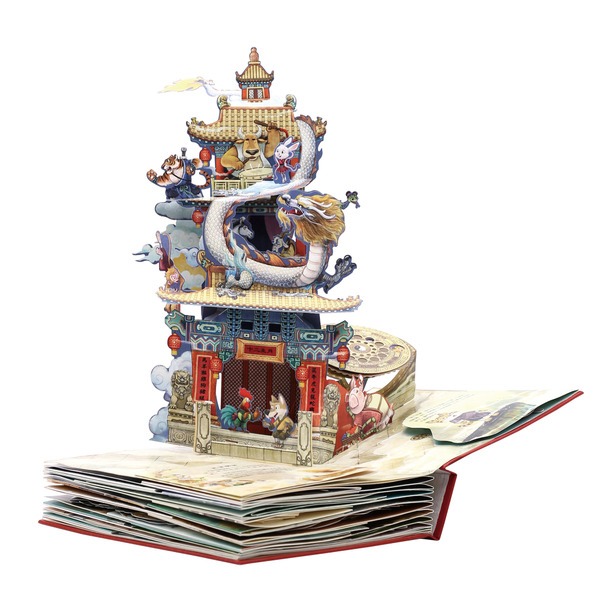 改版狗、豬成為十二生肖的故事頁,打造全新精巧又氣派的立體場景,並且增加好玩的拉動機關,將貓狗不和、豬努力過天河的故事躍然紙上,栩栩如生地呈現給小讀者!
