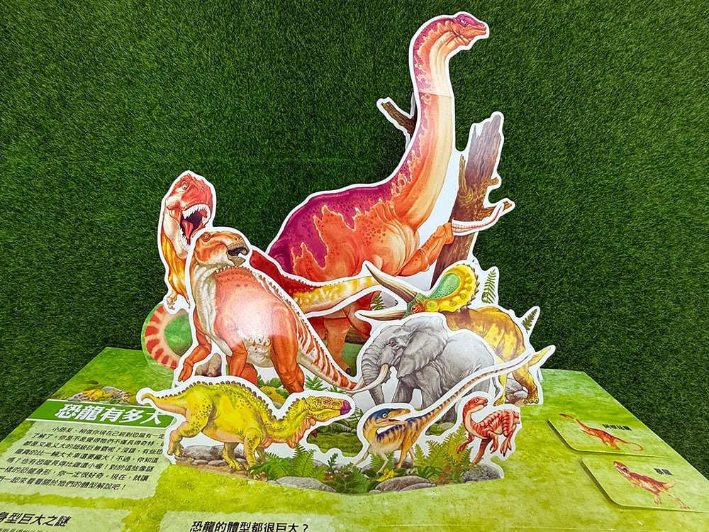 這本大恐龍立體書中有60種以上的恐龍和古生物,編寫了150多個孩子好奇的知識,適合親子共讀,一起在充滿驚奇的恐龍世界中探險!