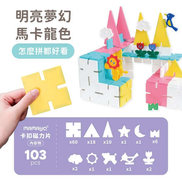 - ·獨家專利磁力片 x 卡扣 x 雪花片開放式新玩法