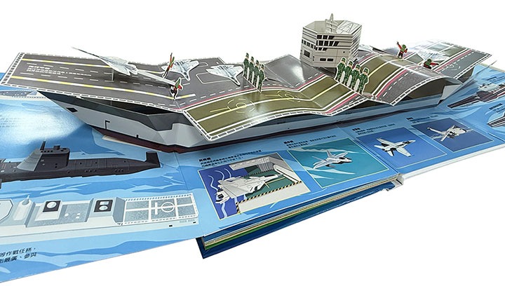 超大開本,內含震撼視覺的3D立體效果、超過80個互動機關、8個畫面豐富的主題場景,以精緻的插圖,呈現陸、海、空及宇宙交通工具的樣貌。動手翻一翻,冒出超大航空母艦,一起認識它可靠的戰鬥夥伴;找出書中隱藏知識,發現更多關於交通工具的祕密!