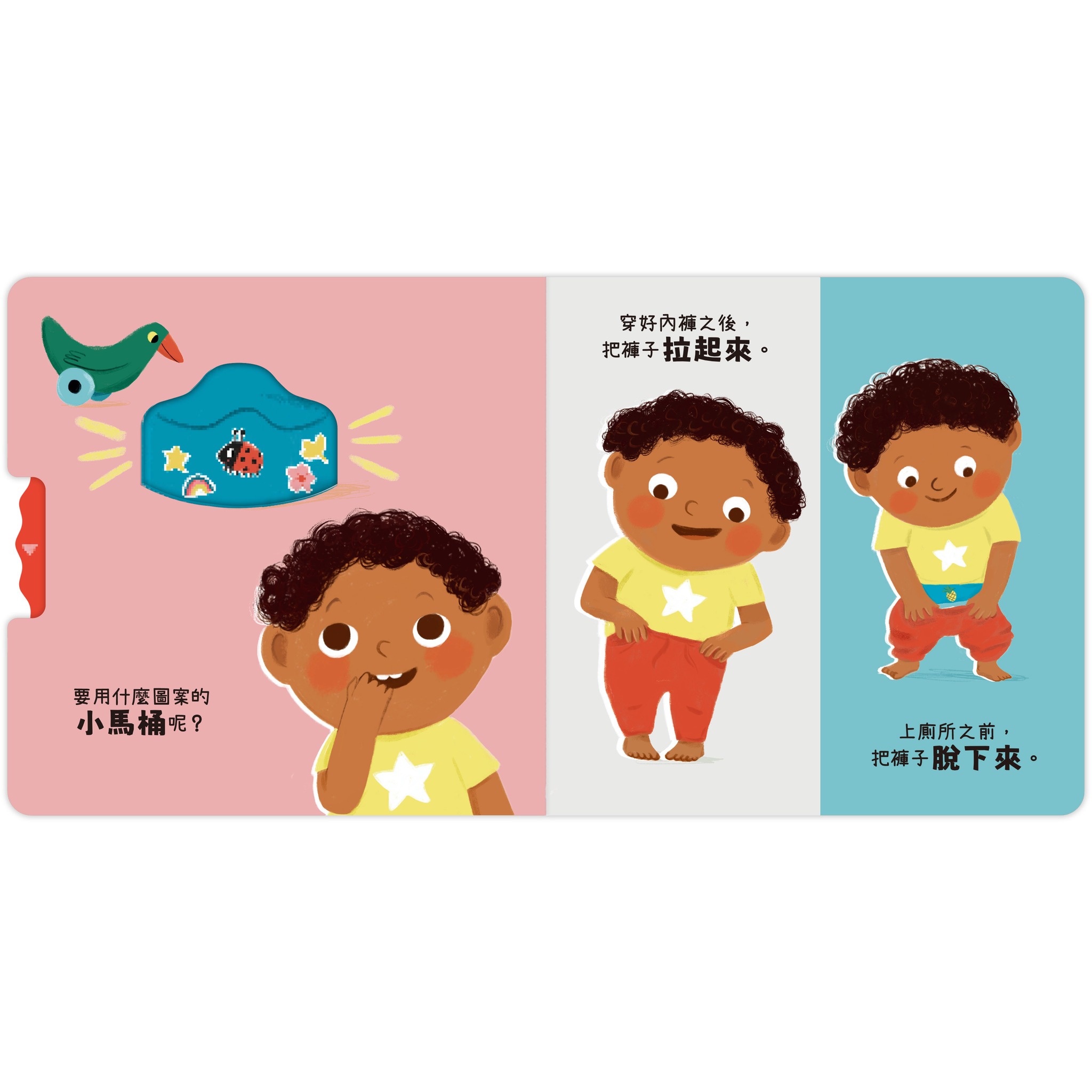 幼兒可以跟著書中的小男孩熟悉「小馬桶」的存在。