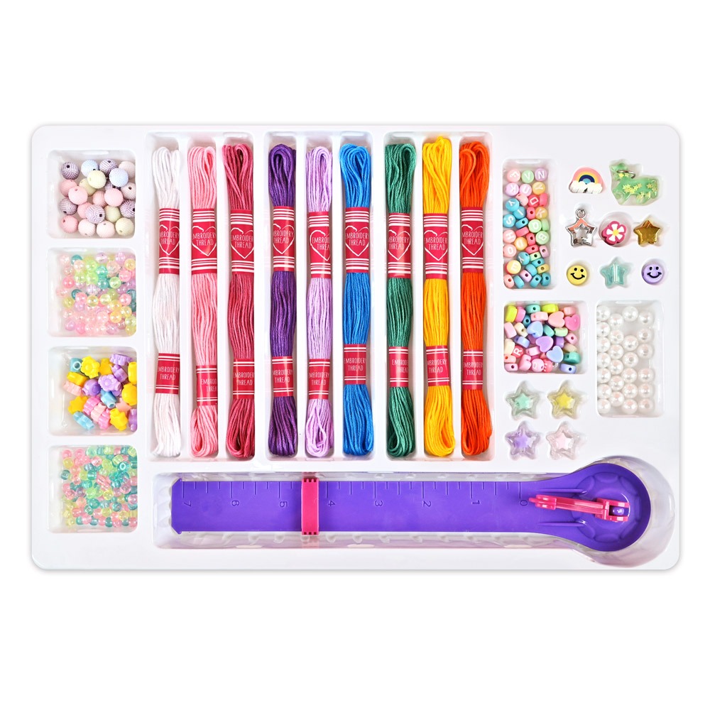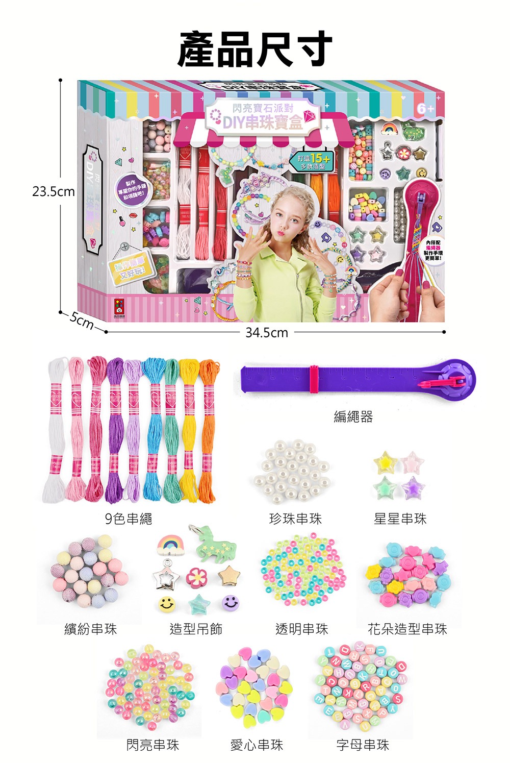 造型吊飾、字母串珠、愛心串珠、珍珠串珠、星星串珠、編繩器X1、8色串繩、透明串珠、花朵造型串珠、閃亮串珠、繽紛串珠